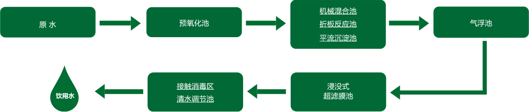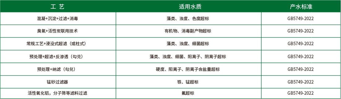 適用條件:水質(zhì)受溫度、降雨影響,波動(dòng)較大,水源污染嚴(yán)重,易于生長(zhǎng)藻類和微生物,推薦采用膜處理工藝